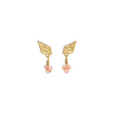 With the imprint of a seashell followed by an elegant cluster of breathtaking pink opals, the Olina Earrings will take you into summer like a fresh sea breeze.